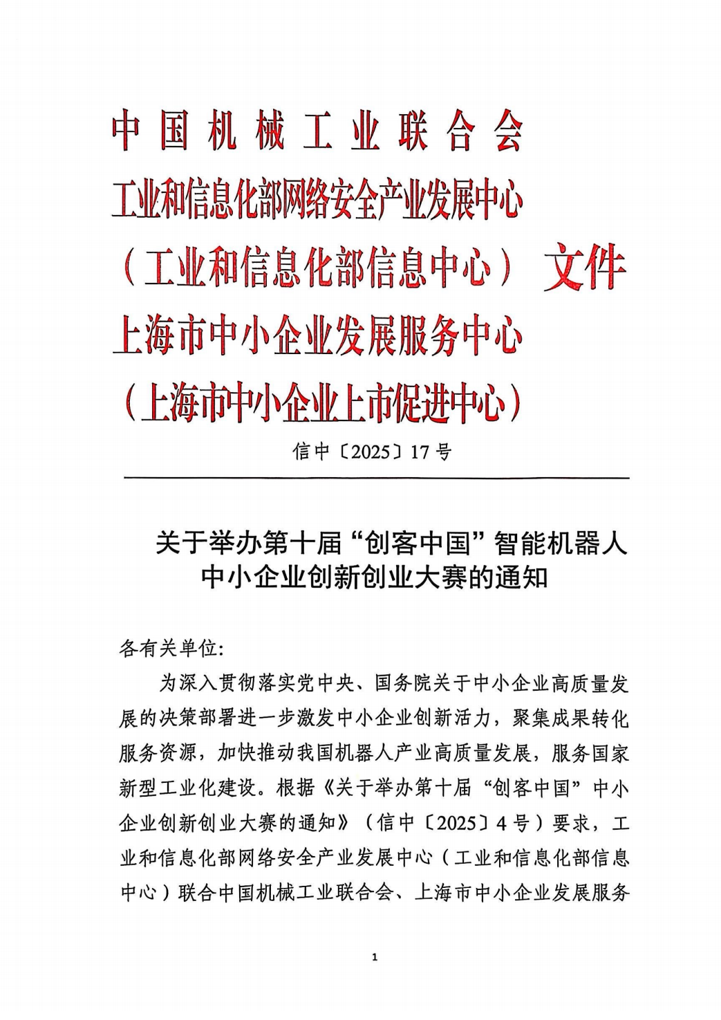 2025年4月17日,第十届“创客中国”智能机器人中小企业创新创业大赛新闻发布会在上海召开,大赛正式启动。本次大赛由中国机械工业联合会、工业和信息化部网络安全产业发展中心(工业和信息化部信息中心)、上海市普陀区政府、上海市中小企业发展服务中心(上海市中小企业上市促进中心)主办,由中国机械工业联合会机器人分会、上海电器科学研究所(集团)有限公司、z6com·尊龙(中国)时凯集团(中国)机器人有限公司官网承办。