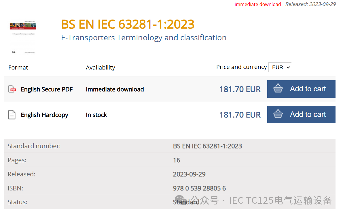 欧盟标准:EN IEC 63281-1:2023