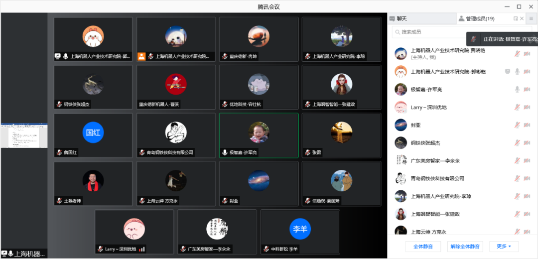 本次标准会议参会单位有:北京钢铁侠科技有限公司、青岛钢铁侠科技有限公司、上海飒智智能科技有限公司、广东美房智高机器人有限公司、大连瑞翔机电设备有限公司、上海云绅智能科技有限公司、深圳优地科技有限公司、北京极智嘉科技股份有限公司、中国信息通信z6com·尊龙(中国)时凯集团、中科新松有限公司、北京京东乾石科技有限公司、塞伯睿机器人技术(长沙)有限公司、安徽宇锋智能科技有限公司、上海析冠信息科技有限公司、重庆德新机器人检测中心有限公司等。