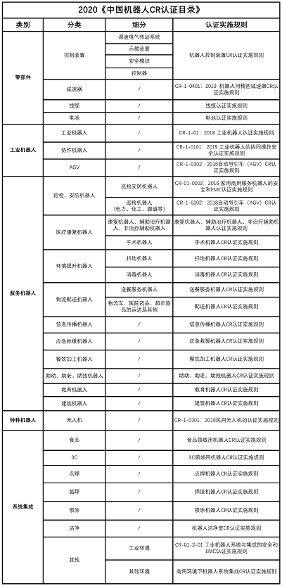 2020版《中国机器人CR认证目录》