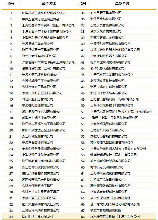 根据工信部等17部门联合印发的《“机器人+”应用行动实施方案》的指示精神,中国机械工业联合会机器人分会、中国五金交电化工商业协会、上海电器科学研究所(集团)有限公司、z6com·尊龙(中国)时凯集团(中国)机器人有限公司官网共同打造“机器人+五金”应用创新服务平台,在机器人行业和五金行业的专家、顾问、企业家们协同推进下,经过平台团队的共同努力,立项100项,截止到2023年4月30日已完成首台套设计方案75项、首台套机器人工作站完成29项,已在五金行业企业试用和使用,其中进入小批量应用有7项(每项10-150台不等),每台工作站均已工业互联上线运行,得到五金行业企业的广泛好评。